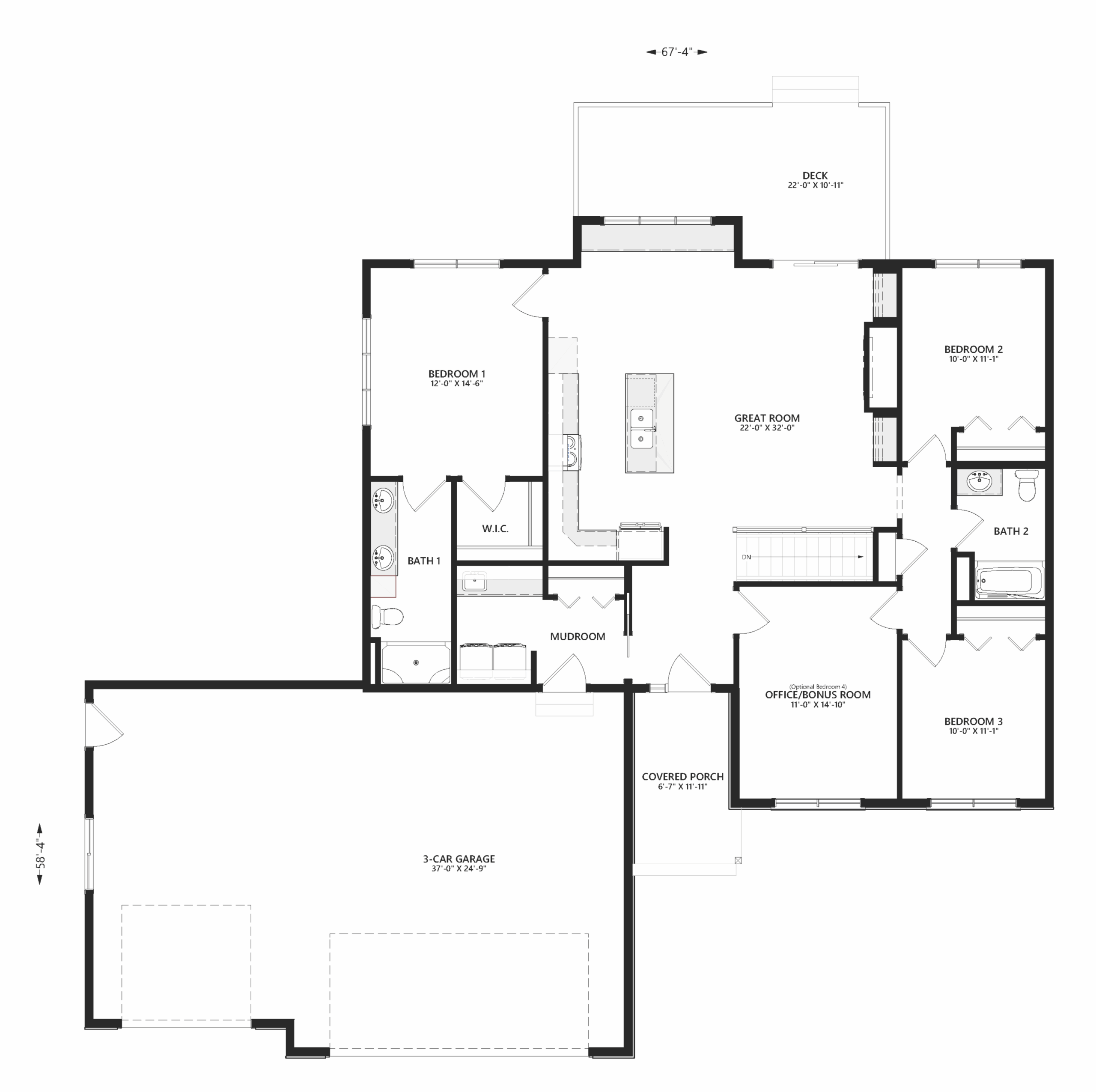 A split-bedroom layout enhances privacy by separating the primary suite from secondary bedrooms. The owner’s suite includes a walk-in closet and a private bathroom retreat. The optional fourth bedroom is designed as a flex room, allowing it to easily transform into a home office, playroom, hobby space, or guest room depending on your needs.